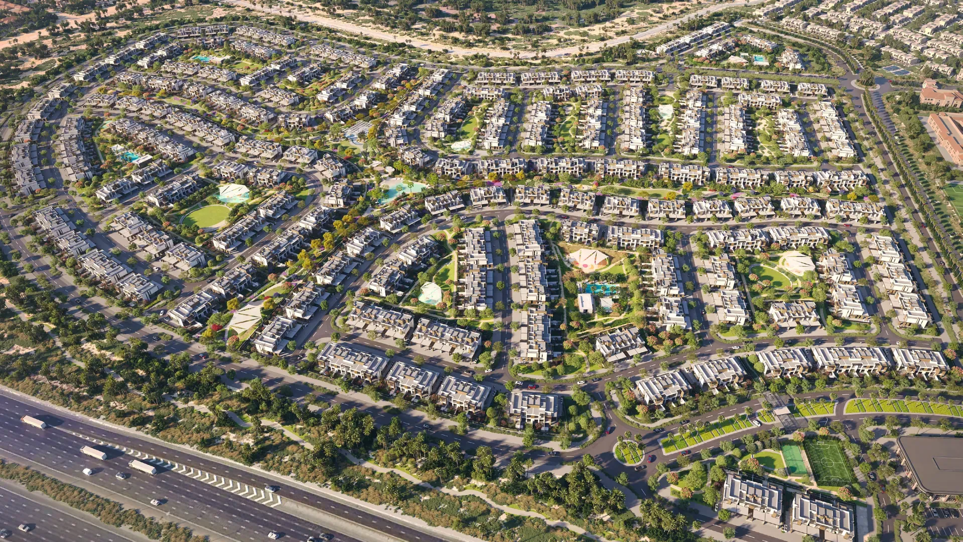 La Tilia at Villanova is a gated, nature focused townhouse community in Dubailand offering 3 and 4 bedroom homes designed for family living with parks, pools and modern amenities.