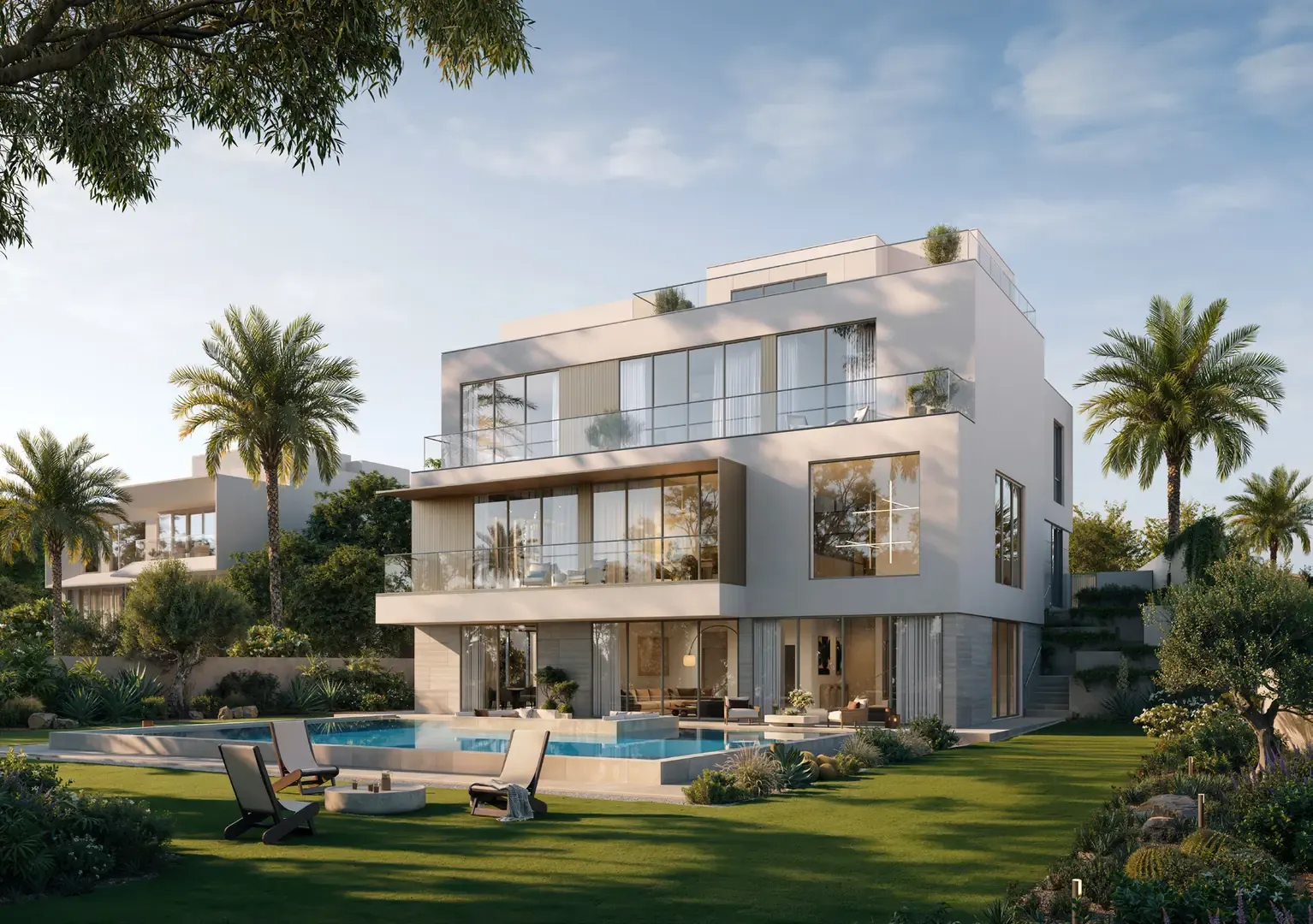 Spacious 5 bedroom villa featuring elegant architecture and private outdoor spaces.